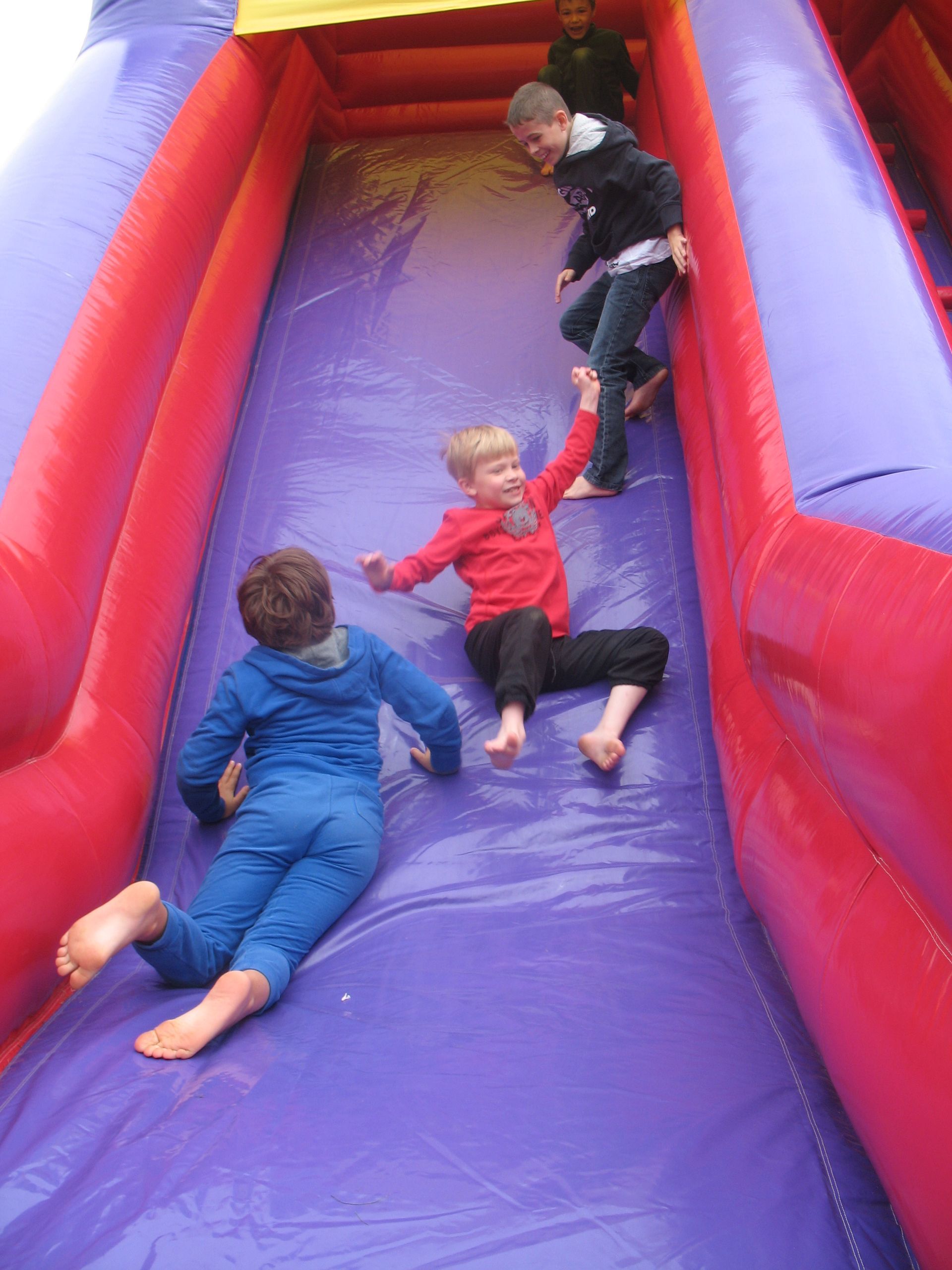 Via de trapjes klauteren we omhoog, om dan weer naar beneden te glijden.