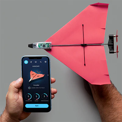 Papieren vliegtuig met motor! Je maakt vluchten van 10 minuten tot over een afstand van 70 meter. Je bedient het vliegtuig met jouw smartphone. De auto stabilizer zorgt er voor dat je zelfs kan stuntvliegen. Daarnaast kan je ook zelf aan de slag en jouw eigen vliegtuig ontwerpen in karton of piepschuim en laten vliegen door middel van deze module. Urenlang vlieg-, vouw- en knutselplezier gegarandeerd.