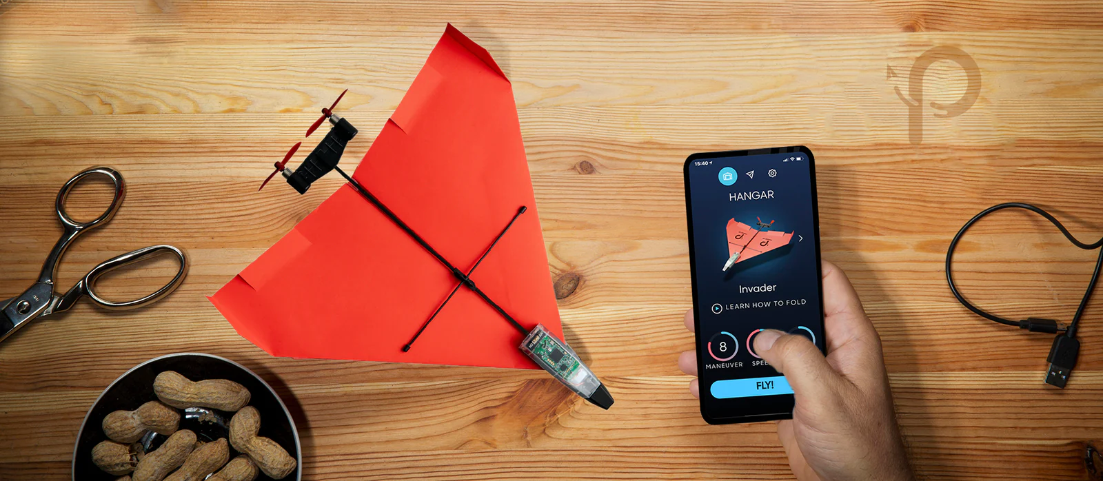 Smartphone bestuurd papieren vliegtuig